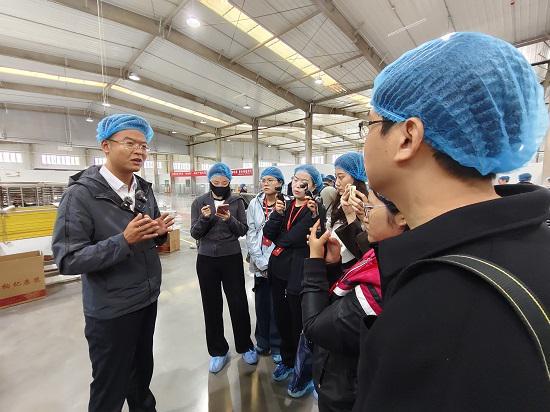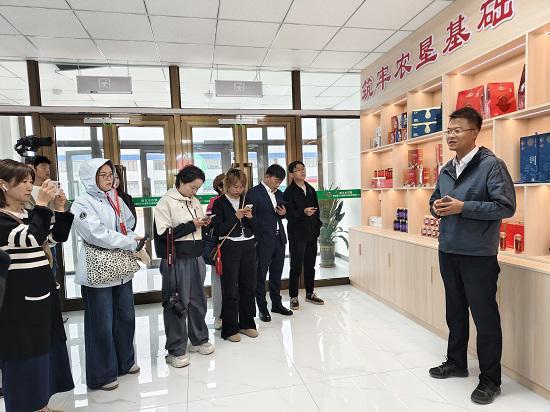格尔木农垦(集团)有限公司格尔木特色生物产业园副主任邢亮德向大家介绍枸杞产品(刘彩荣 摄)