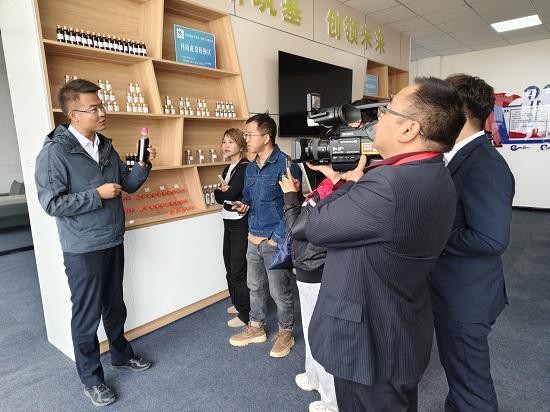格尔木农垦(集团)有限公司格尔木特色生物产业园副主任邢亮德向大家介绍枸杞新产品(刘彩荣 摄)